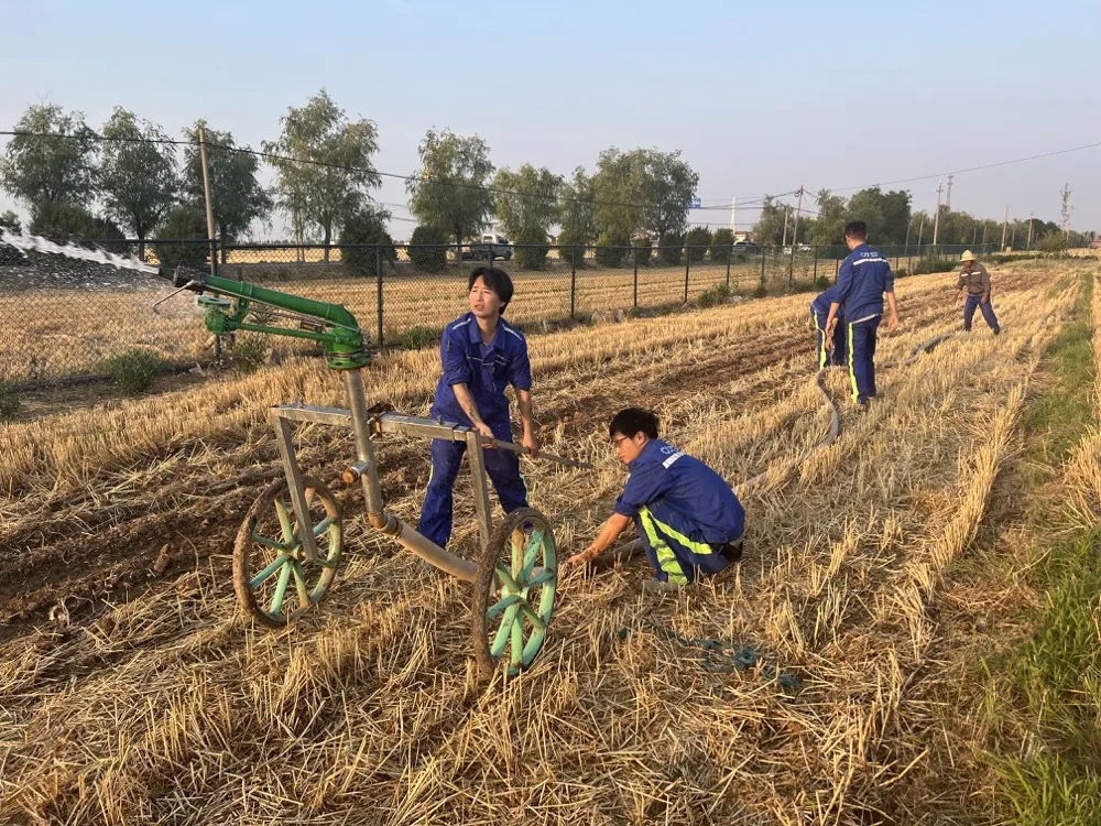 中国融通集团农发济南区域公司安阳基地浇水保苗����� �������Ƴ������������ �������Ƴ������������ �������Ƴ������������ �������Ƴ������� 6月以来,针对河南地区持续干旱,普遍面临土壤墒����� �������Ƴ������������ �������Ƴ������������ �������Ƴ������������ �������Ƴ�������情差、造墒保墒灌溉需求大的农情,����� �������Ƴ������������ �������Ƴ������������ �������Ƴ����������� �������Ƴ�������中国中化调配140台卷盘式喷灌机,在驻马店、����� �������Ƴ������������ �������Ƴ������������ �������Ƴ������������ �������Ƴ�������开封、焦作等旱情严重地区����� �������Ƴ����������� �������Ƴ����������� �������Ƴ����������� �������Ƴ�������为农户提供灌溉服务。每台喷灌机����� �������Ƴ����������� �������Ƴ������������ �������Ƴ������������ �������Ƴ������每天可完成灌溉60亩,目前已助力����� �������Ƴ����������� �������Ƴ����������� �������Ƴ������������ �������Ƴ�������农户灌溉耕地126000亩次。此外,中国中化����� �������Ƴ����������� �������Ƴ������������ �������Ƴ������������ �������Ƴ�������依托在河南省的50余个中化现代农业����� �������Ƴ������������ �������Ƴ����������� �������Ƴ������������ �������Ƴ������技术服务中心和140名一线农艺����� �������Ƴ������������ �������Ƴ������������ �������Ƴ������������ �������Ƴ�������师,通过线下和线上方式,为农户提供旱期����� �������Ƴ������������ �������Ƴ������������ �������Ƴ������������ �������Ƴ�������播种、播后管护等技术指导和农资保障。 在节水灌溉方面,中国中化今年在开����� �������Ƴ������������ �������Ƴ������������ �������Ƴ������������ �������Ƴ�������封、焦作、南阳等地开展水肥一体化项目示范约20����� �������Ƴ������������ �������Ƴ������������ �������Ƴ������������ �������Ƴ�������00亩,辐射带动并指导周边区域农户开展����� �������Ƴ������������ �������Ƴ������������ �������Ƴ������������ �������Ƴ������水肥一体化技术及设备应用约2����� �������Ƴ������������ �������Ƴ������������ �������Ƴ������������ �������Ƴ�������万亩。目前,这些运用水肥����� �������Ƴ������������ �������Ƴ����������� �������Ƴ������������ �������Ƴ�������一体化技术的农田,在当前高温����� �������Ƴ������������ �������Ƴ������������ �������Ƴ������������ �������Ƴ�������干旱的天气下,已展现出较好的造墒播种和����� �������Ƴ������������ �������Ƴ������������ �������Ƴ������������ �������Ƴ�������保墒保苗效果。