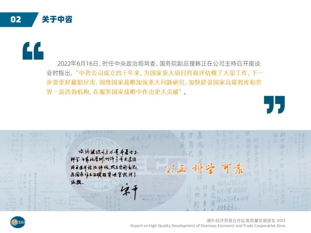 为加快推动境外经贸合作区的质量变革、效率变革����� �������Ƴ������������ �������Ƴ������������ �������Ƴ������������ �������Ƴ�������和动力变革,努力实现更高合����� �������Ƴ����������� �������Ƴ������������ �������Ƴ������������ �������Ƴ�������作水平、更高投入效益、更高����� �������Ƴ������������ �������Ƴ������������ �������Ƴ������������ �������Ƴ�������供给质量、更高发展韧性,推动共建����� �������Ƴ������������ �������Ƴ������������ �������Ƴ������������ �������Ƴ�������“一带一路”高质量发展不断取得新成效,����� �������Ƴ������������ �������Ƴ������������ �������Ƴ������������ �������Ƴ�������中咨公司在商务部的精心指导,各省市商务厅����� �������Ƴ������������ �������Ƴ������������ �������Ƴ������������ �������Ƴ�������和相关政府部门、金融机构,以及73家境外经����� �������Ƴ����������� �������Ƴ������������ �������Ƴ������������ �������Ƴ�������贸合作区的大力支持下,系统、全面、����� �������Ƴ������������ �������Ƴ������������ �������Ƴ������������ �������Ƴ�������客观、公正地开展了境外经贸合作区高质����� �������Ƴ������������ �������Ƴ������������ �������Ƴ������������ �������Ƴ�������量发展评价工作,形成相关研究成果����� �������Ƴ������������ �������Ƴ������������ �������Ƴ������������ �������Ƴ�������。